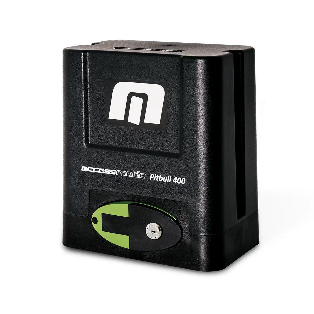 El Motor Corredizo Pitbull 400 incluye sistema de apertura corredizo para puertas de hasta 400 Kg, finales de carrera mecánicos, 4 metros de cremallera plástica y 2 controles remoto ALS4.