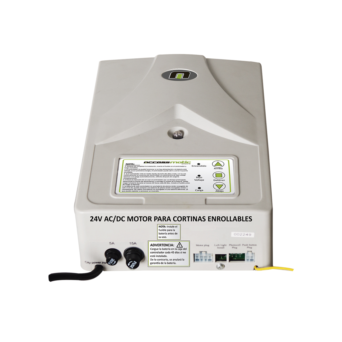 Motor Enrollable Hulk 550 DC incluye motor 24v, tarjeta con batería de respaldo incorporada, accesorios para su instalación, pulsador integrado a la tarjeta de 3 botones, funcionamiento a 110 V